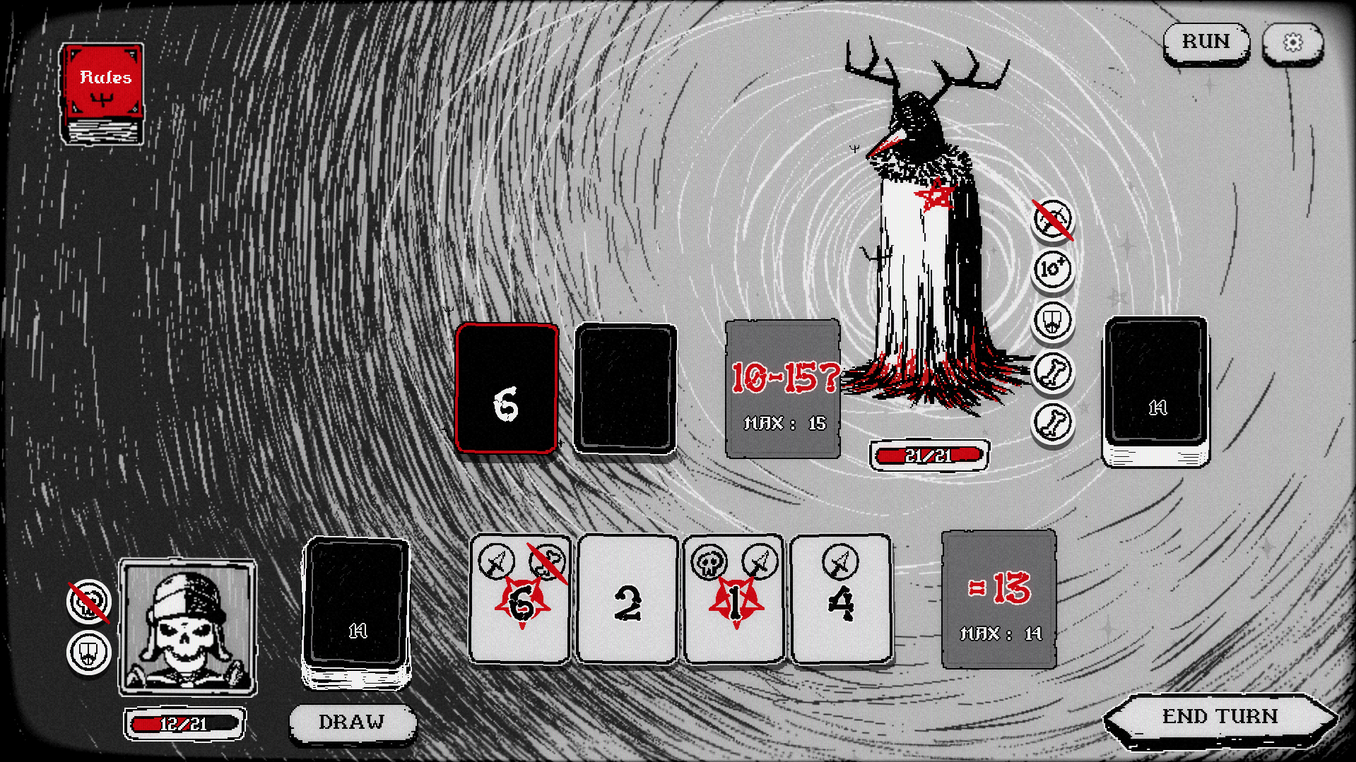 It didn't mattered what the boss pulled because I always got 13 >:D (I still lost 2 times xd)