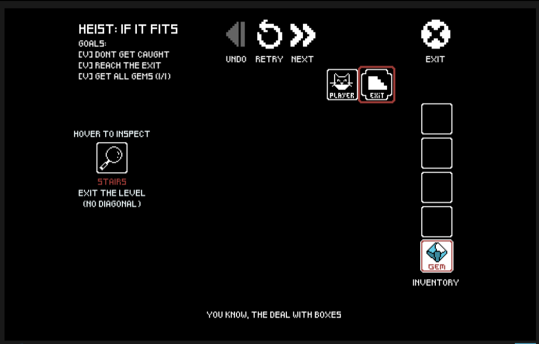 This is a really neat puzzle game, and it works great with the non-violent limitation of the jam! It would also work really well as a mobile game, if you plan on expanding it some more.